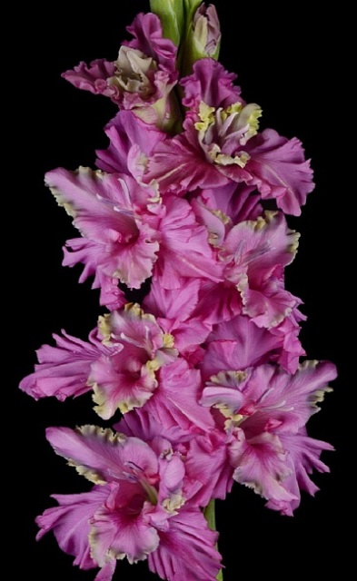 Яркая неоновая окраска. Основной цвет лиловый. Внутренние лепестки волнообразные, с дымчатой каймой и кремовыми нерегулярными бликами. Диаметр цветка -12-14 см. Срок цветения - ранний (июль-август). Высота 130-150 см.