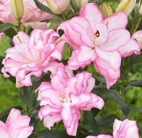 Сорт формирует очень крупные махровые кремовые с нежно-розовыми краями лепестков цветки, которые испускают тонкий, нежный аромат. Высота растения - 90 см, диаметр цветков - 22 см.