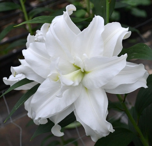 Сорт отличается огромными белоснежными цветками с плотными лепестками немного волнистыми по краям. Цветки данного сорта не производят пыльцу, поэтому их можно выращивать тем, у кого имеется аллергия. Цветет с середины лета по начало осени. Высота стебля может достигать до 110 см, диаметр цветков - до 20 см.