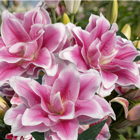 Цветок имеет диаметр 18-20 см и ярко-розовую окраску со снежной окантовкой. Вишневый крап сочетается с лучами, идущими от центра к краю. Сорт обладает лёгким, приятным ароматом. Высота растения - до 110 см.