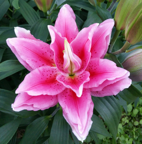 Лилия Роузлили Виола — эффектная восточная махровая красавица, которая станет настоящим украшением любого сада. Крупные бутоны диаметром до 17 см окрашены в розово-карамельные тона с тёмно-розовой серединкой и тонким крапом. Нежный, не приторный аромат придаёт цветению особую изысканность, а многолепестковая структура цветка создаёт впечатление пышного ковра. Высота растения достигает около 100 см, поэтому лилия смотрится выразительно как в одиночных посадках, так и в групповых композициях.
