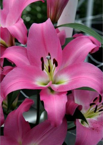цветок розовый с желтый центром, н80-100см, цветение июнь-сентябрь