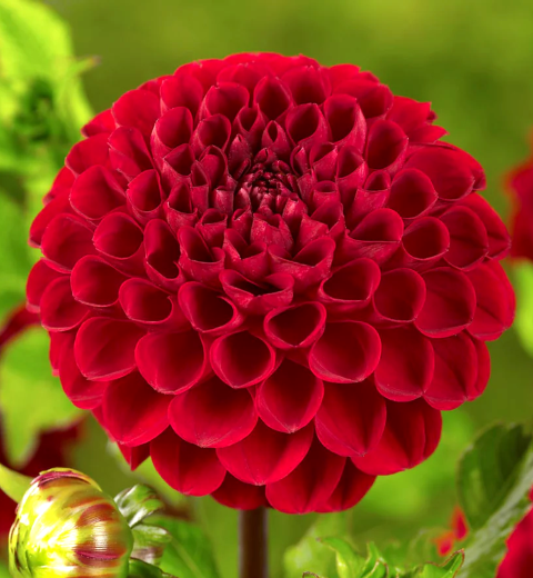 Викинг - шаровидная или помпонная георгина. Куст 90-110 см высотой, крепкий, хорошо облиственный. Цветки шаровидные, насыщенного темно-бордового цвета, 5-8 см диаметром. На одном кусте 10-15 соцветий. Великолепный сорт для срезки. Период цветения: с середины июля до заморозков.