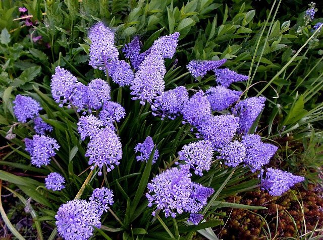 Сцилла Литардьера – это многолетнее луковичное растение из семейства Спаржевые (подсемейство Пролесковые), высотой 20–30 см. Ее узкие листья, до 20 см длиной, формируют прикорневую розетку. Мелкие, звездчатые цветы (2–2,5 см в диаметре) собраны в плотные конусовидные соцветия насыщенного голубого цвета, каждое из которых может содержать до 70 бутонов. Цветет Сцилла Литардьера в конце мая – июне (сроки зависят от климата) в течение примерно 2–3 недель. Идеально подходит для альпинариев, рокариев и тенистых групповых посадок. Прекрасно сочетается с мускари, подснежниками и луговыми травами.