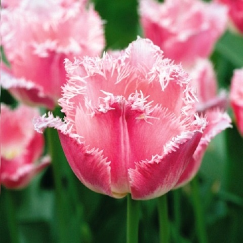 Тюльпан Белль Сонг – это многолетнее луковичное растение, достигающее 45-50 см в высоту. Его изюминка – очаровательные розово-коралловые цветки с изящной белой бахромой по краям лепестков, формирующие элегантный бокал. Цветет в мае. Идеален для украшения садов и создания эффектных букетов.