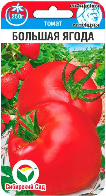 Томат Большая ягода - урожайный сорт, выведенный в Сибири, созревает за 110-115 дней. Отличается неприхотливостью и устойчивостью к холоду, обильно плодоносит как в открытом, так и в закрытом грунте. Растения впечатляют количеством плодов: клубнично-красные томаты с сахарной, вкусной мякотью успевают вызреть даже в суровое сибирское лето. Сорт подходит для выращивания по всей России, в любых условиях. Кусты достигают 1-1,5 метра в высоту и требуют пасынкования до первой цветочной кисти. Простые соцветия несут по 5-6 округлых малиновых плодов весом 150-250 грамм. Томаты плотные, красивые, насыщенно-красные в спелости, с сочной мякотью превосходного вкуса. Плоды универсальны: идеальны для салатов, готовки и консервации. С одного растения можно собрать до 4,5 кг урожая.