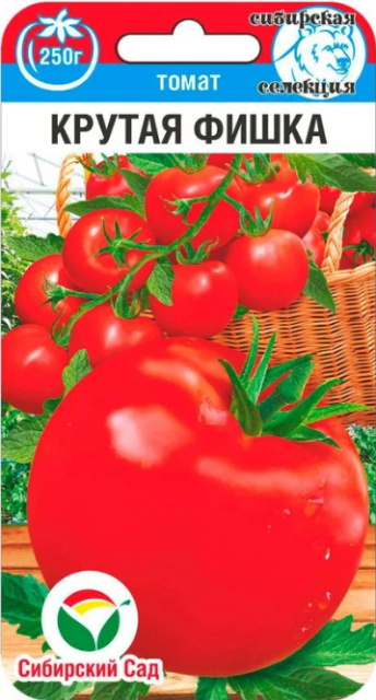 Томат Крутая фишка - среднеспелый (115-125 дней) сибирский сорт со стабильным и обильным урожаяем высокого качества. Кусты, достигающие 2 метров и более, слабо ветвятся, что упрощает уход. Сорт устойчив к основным болезням, обеспечивая длительное плодоношение. Крупные, плотные и вкусные плоды с малым количеством семян прекрасно хранятся. В теплицах урожайность особенно впечатляет (до 19 кг/м², включая ранний сбор до 8 кг/м²), в южных и центральных регионах России сорт можно успешно выращивать в открытом грунте. Плоды массой 150-250 гр., округлые, глянцево-красные, идеальны для свежего потребления, кулинарии и консервации. Сорт толерантен к вирусу табачной мозаики, фузариозу, кладоспориозу и галловой нематоде.