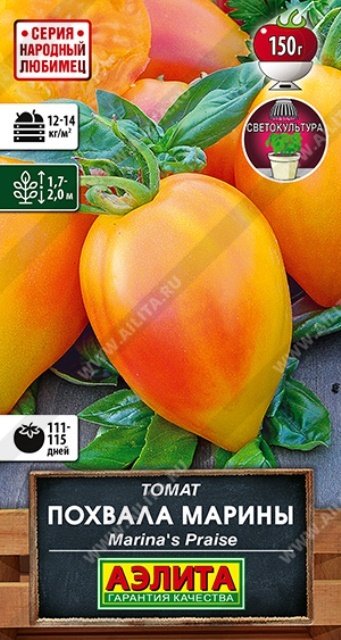 Среднеспелый, от всходов до начала уборки 111-115 дней. Индетерминантный, высота растений в теплице 1,7-2 м. Плоды* массой 100-150 гр.(некоторые до 200 гр.), сочные, с нежной мякотью. Вкус сладкий, с небольшой кислинкой и фруктовыми оттенками. Они хороши в салатах, сэндвичах, подходят для переработки и консервирования. На стадии рассады листья могут быть с белыми пятнами и штрихами. Собранные плоды хорошо хранятся продолжительное время. Урожайность 12-14 кг/м2.