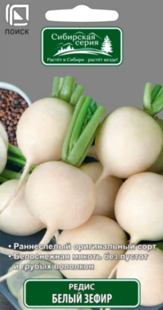 Среднеспелый сорт. Период от всходов до уборки 28-31 дней. Розетка листьев полупрямостоячая. Корнеплод округлый с плоской головкой, белый. Мякоть белая, нежная, сочная, острая. Масса корнеплода 17-25 гр. Вкусовые качества отличные.