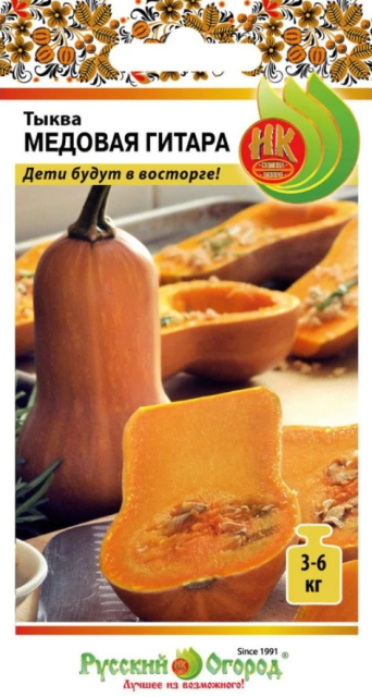 Среднеспелый сорт очень сладкой мускатной тыквы. Растение длинноплетистое. Плоды удлиненной грушевидной формы, массой 3-6 кг. Мякоть оранжевая, плотная, сочная, с высоким содержание сухих веществ и сахаров. Сохраняет товарные качества 100 дней после съема плодов.