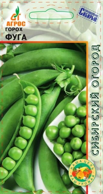 Горох Фуга - среднеспелый сорт, с крупными, морщинистыми (мозговыми) зернами, предназначенный для лущения. Растение компактное, кустовое, высотой до 60 см, с плотно расположенными листьями. Стручки, которых на растении 5-6 штук, имеют прочную пергаментную оболочку и легко раскрываются. Они прямые, темно-зеленые, длиной до 9 см и шириной 1,5 см, содержат 9-12 зерен. Горошек отличается превосходным вкусом как в свежем виде, так и после консервирования. Идеален для заготовок и употребления в пищу без обработки.