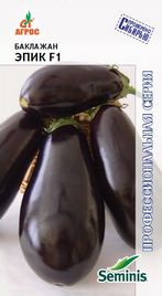 Раннеспелый гибрид, отличающийся хорошим завязыванием плодов. На компактном растении формируются крупные (10х22 см), темно-фиолетовые плоды отличного качества. Мякоть кремово-белая, плотная, без горечи. ЭПИК F1 хорош для приготовления блюд домашней кулинарии и переработки. Особенности выращивания: рекомендуется выращивать в открытом грунте или под временными пленочными укрытиями с обязательной подвязкой к вертикальной опоре; рекомендуется выращивать рассаду без пикировки, что обеспечит более ранний сбор урожая.