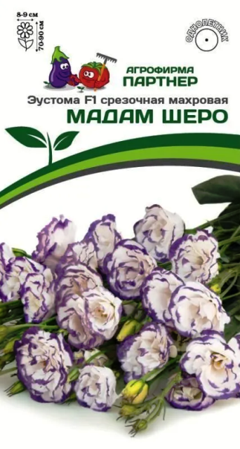 Чарующие и торжественные, порой трепетные и трогательные - эустомы создают особое настроение, украшая наши цветники. МАДАМ ШЕРО - красавица белоснежного цвета с лилово-фиолетовой каймой по краю лепестков. Роскошные махровые цветки, достигающие в диаметре 9 см, начинают раскрываться один за другим в начале лета и радуют до сентября. Одно растение с несколькими распустившимися цветками и множеством нераскрытых бутонов выглядит как готовый букет. Плотные атласные лепестки цветков хорошо держат форму и долго сохраняют свежесть в срезке. Такие качества высоко ценятся как в цветоводстве, так и во флористике. Серия надежная, выносливая и устойчивая к капризам погоды и болезням, в том числе и к серой гнили (Botrytis). Чтобы уже в начале лета наслаждаться цветением, стоит своевременно позаботиться о выращивании рассады. Рекомендуемый объем кашпо - 5-8 л на одно растение или схема посадки в грунт – 25х25 см.