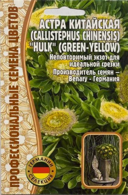 Настоящее воплощение оригинальности и стиля! Её необычные зелёные лепестки с лёгким желтоватым оттенком создают эффект свежести и новизны в любом букете или цветочной композиции. Растение достигает высоты около 55 см, обладает крепкими стеблями и обильным цветением, что делает его идеальным выбором для срезки и украшения интерьера. Hulk отличается длительным периодом цветения и устойчивостью в вазе, что особенно ценится флористами и любителями свежих цветов. Выбирая семена астры Hulk, Вы приносите в свой сад не только красоту, но и неповторимый шарм, способный удивить и порадовать каждого.