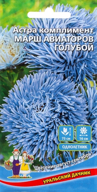 Астра комплимент Марш авиаторов – это сорт астр, идеально подходящий для срезки, отличающийся необычными игольчатыми соцветиями. Эти эффектные цветы поражают своим нежно-голубым оттенком и внушительным размером – до 15-17 см в диаметре. Растения достигают примерно 75 см в высоту, формируя пирамидальные кусты, на которых одновременно распускается 10-12 крупных соцветий. Цветение: август-сентябрь. Сорт прекрасно подходит как для украшения клумб, так и для создания пышных букетов, сохраняя свою свежесть в вазе до двух недель.