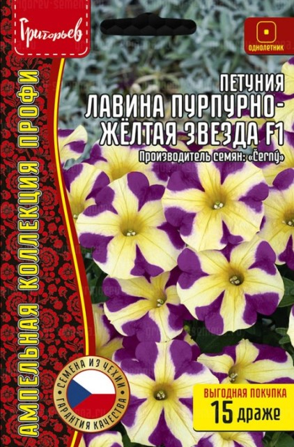 Петуния Лавина Пурпурно-Жёлтая Звезда F1 крупноцветковая (Григорьев)