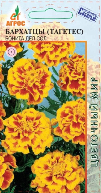 Форма куста компактная, соцветия-корзинки диаметром 4-5 см, махровые, светло-желтые с красно-коричневым пятном в центре лепестка, гвоздиковидные. Бархатцы неприхотливые, быстрорастущие, засухоустойчивые и светолюбивые растения, но выносят небольшое затенение, поэтому ими можно оформлять участки с северной стороны строений. Зацветают через 2-2,5 месяца после посева, и цветение длится до сильных заморозков.