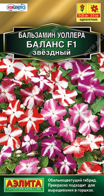 Бальзамины серии Баланс от голландской компании Hem Genetics отличаются обильным продолжительным цветением. Цветки изящные, очень яркие, D 2-3 см, не опадают длительное время. Кустики высотой 15-25 см, компактные, хорошо разветвленные. Бальзамин неприхотлив, не требователен к освещению. Сохраняет при этом красочное пышное цветение, а стебли не вытягиваются в длину. Гибрид идеально подходит для высадки в балконные контейнеры, украшения низкорослых клумб, окаймления садовых дорожек.